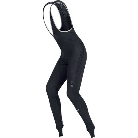 For lower-body cold protection during winter road cycling, the GORE Oxygen Bib Tight with WindStopper Soft Shell is the pinnacle of performance. This stirrup bib envelops your lower torso and legs in anatomic panels of water-resistant stretch WindStopper material, stitched together with flatlock seams in a riding-oriented body position. A mesh panel in the rear of this high-cut bib provides improved wicking and ventilation in changing weather.Product Features